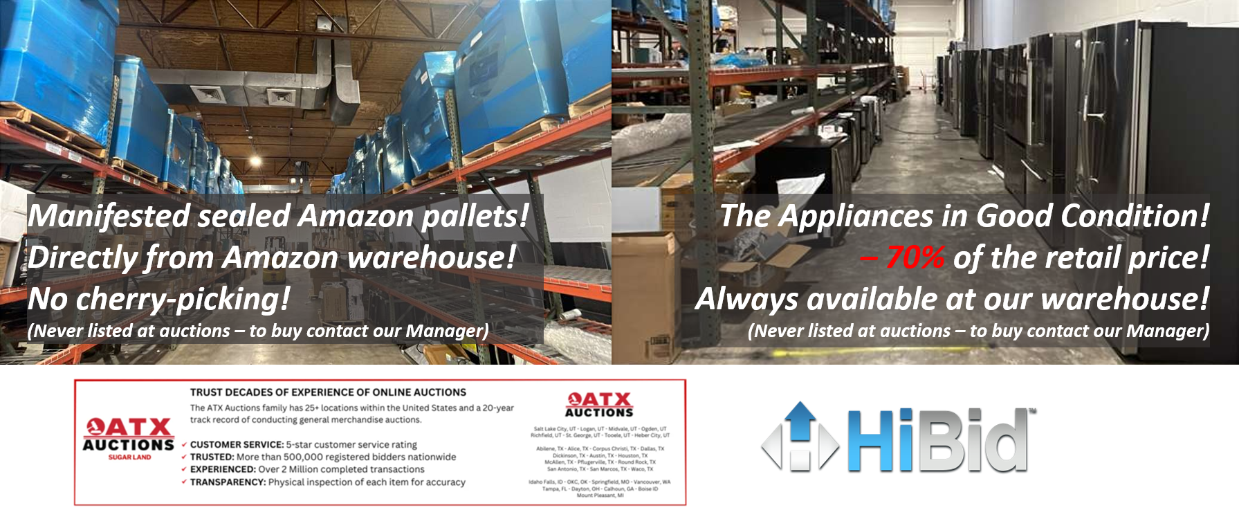 Bid on Amazon returns and retail liquidation from the comfort of home, then pick up your winnings at our local warehouse near Sugar Land, TX.